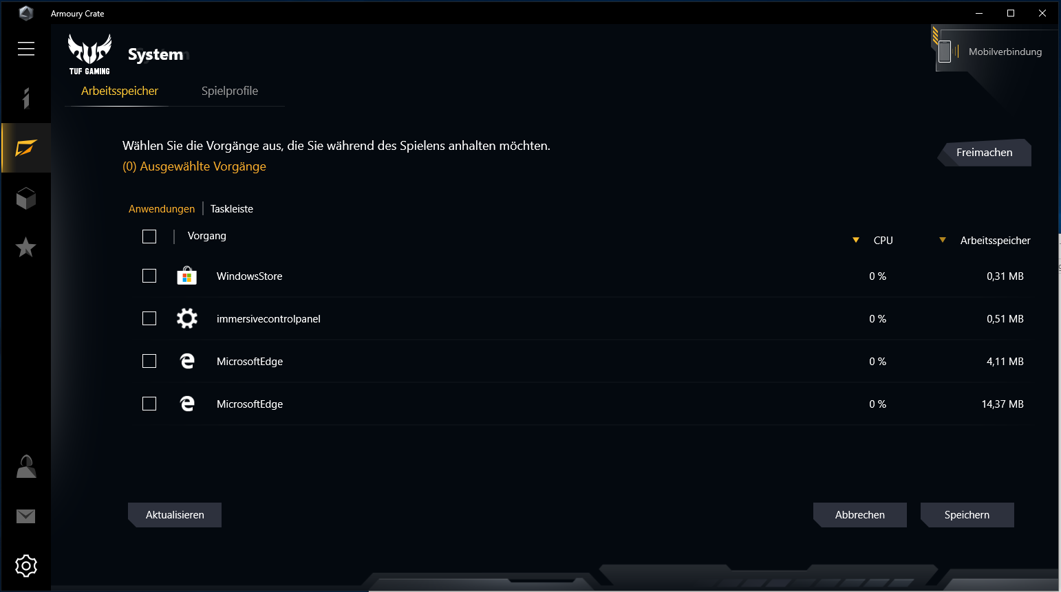 Für ein niedrigeres Betriebsgeräusch muss im Armoury-Crate-Control-Center der Leise-Modus gewählt werden. Allerdings geht dies zu Lasten der CPU-Leistung.