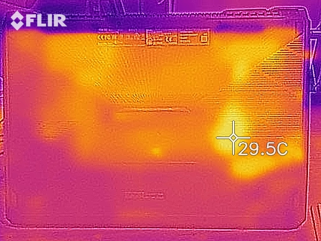 (+) Die Handballen und der Touchpad-Bereich sind mit gemessenen 22.9 °C kühler als die typische Hauttemperatur und fühlen sich dadurch kühl an.