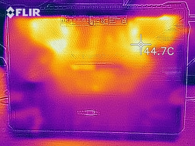 Sonderlich stark erwärmt sich das Notebook nicht. Während des Stresstests registrieren wir nur an einem Messpunkt eine Temperatur knapp oberhalb von 40 Grad Celsius. Im Alltagsbetrieb liegen die Werte im grünen Bereich. Der Stresstest stellt ein Extremszenario dar, welches so im Alltag nicht auftritt. Wir überprüfen mit diesem Test, ob das System auch bei voller Auslastung stabil läuft.
