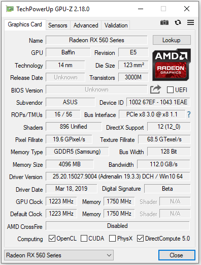 | Durchschnittliche AMD Radeon RX 560X (Laptop) (n=1) | |
