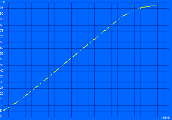 Beim Thema Energieaufnahme geht das Asus Transformer 3 Pro genügsam zu Werke: Der durchschnittliche Verbrauch unter Last beträgt 26 Watt, was auch ein Resultat der gedrosselten TDP des Prozessors ist. Beim Idle-Betrieb liegen die Messergebnisse bei 6,7 bis 13,5 Watt. Damit verbraucht das Asus Transformer 3 Pro teilweise deutlich mehr als die Vergleichsgeräte. An dieser Stelle sollte der Hersteller bei zukünftigen Geräten etwas nachbessern. Gerade in diesem Teillastbereich wird es das Gerät mit einer gesteigerten Akkulaufzeit danken. Das kompakte Netzteil, welches über den USB-C-3.1-Anschluss mit dem Gerät verbunden wird, kann maximal 45 Watt zur Verfügung stellen. Bei einem komplett entladenen Akku ist das Gerät nach ca. 2:30 Stunden wieder vollständig aufgeladen.