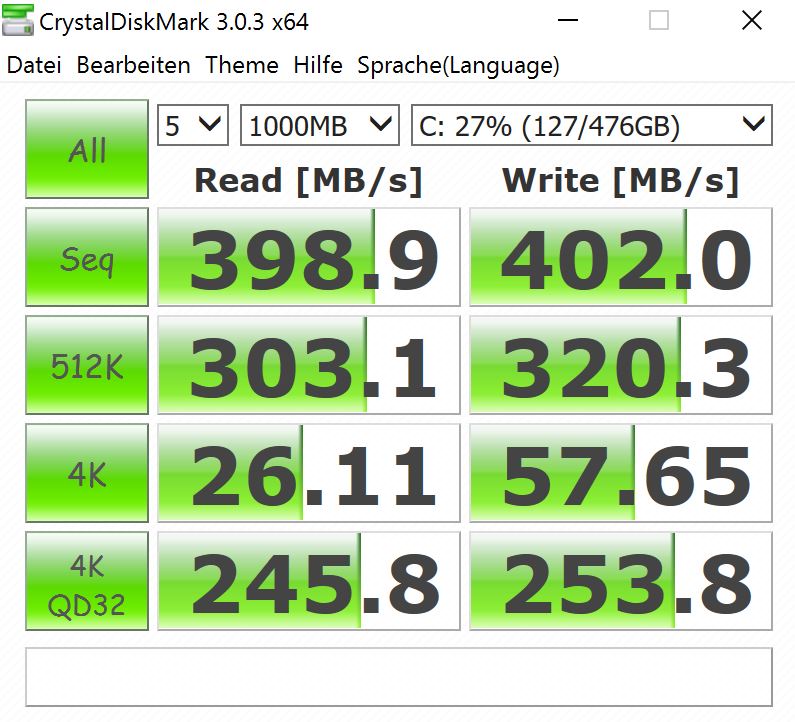 Bei unserem Testgerät wurde eine 512-GB-SSD mit SATA3-Geschwindigkeit verbaut. Weiterhin kommen bei dem von uns getesteten Gerät der schnellere Prozessor zum Einsatz sowie 16 GB RAM. Dieses Paket wechselt derzeit für 1.599 Euro den Besitzer.