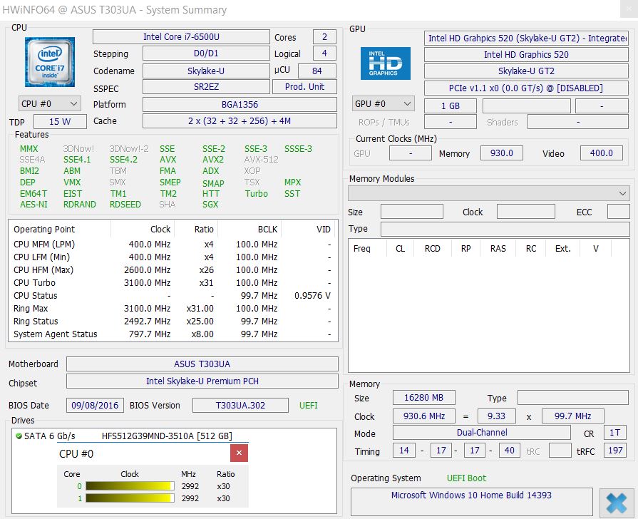 | Asus Transformer 3 Pro T303UA-GN050T HD Graphics 520, 6500U, SK Hynix Canvas SC300 512GB M.2 (HFS512G39MND) | Microsoft Surface Pro 4, Core m3 HD Graphics 515, 6Y30, Samsung MZFLV128 NVMe | Lenovo ThinkPad X1 Yoga-20FRS1VS00 HD Graphics 520, 6600U, Samsung SSD PM961 1TB M.2 PCIe 3.0 x4 NVMe (MZSLW1T0) | HP Elite x2 1012 G1 HD Graphics 515, 6Y54, Liteon L8H-256V2G | Acer Aspire Switch Alpha 12 SA5-271-56HM HD Graphics 520, 6200U, Kingston RBU-SNS8152S3256GG2 | |