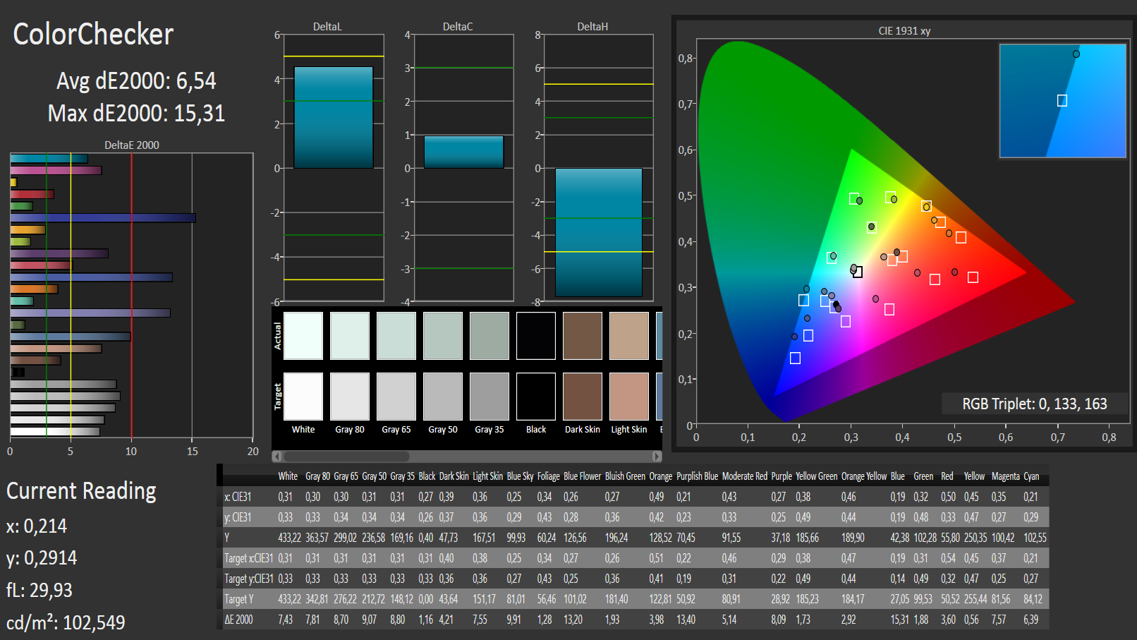 ΔE ColorChecker Calman: 6.54 | ∀{0.5-29.43 Ø4.78}