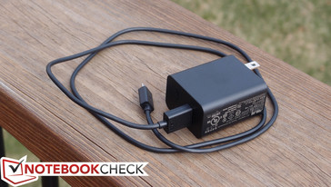 Die Größe des Netzteils entspricht in etwa einem Telefon. Es handelt sich dabei um ein Micro-USB-Netzteil mit einer Ausgangsleistung von 2A. Ähnlich wie bei vielen Tablets lässt sich somit fast jedes moderne Micro-USB-Netzteil verwenden, um die beiden Komponenten des T100 Chi aufzuladen.