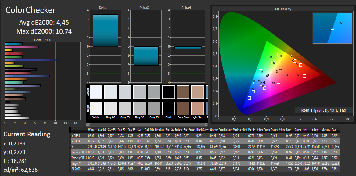 ΔE ColorChecker Calman: 4.45 | ∀{0.5-29.43 Ø4.78}