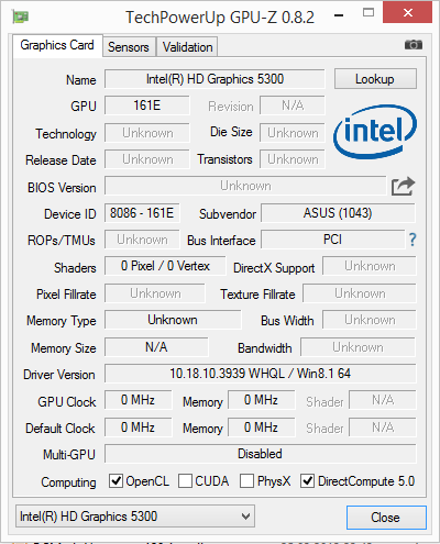 Der Grafikkern des Transformer Book trägt die Bezeichnung HD Graphics 5300. Dieser unterstützt DirectX 11.2 und arbeitet mit Geschwindigkeiten zwischen 100 und 800 MHz. Die Resultate in den 3D Mark Benchmarks bewegen sich auf einem normalen Niveau für diese GPU. Bessere Resultate würden erreicht werden, wenn der Arbeitsspeicher im Dual-Channel-Modus liefe. Hierauf hat der Nutzer aber beim Transformer Book keinen Einfluss.