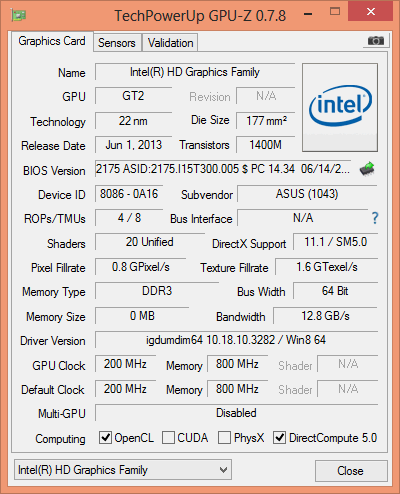 Die Intel HD Graphics 4400 bietet einen Kerntakt von 1.000 MHz und unterstützt sogar aktuelle Grafikstandards wie DirectX 11.1 oder OpenGL 4.0. Damit ist ein deutliches Leistungsplus gegenüber dem TX300CA festzustellen: Insgesamt ist das Transformer Book T300LA in Sachen Grafik zwischen 26 % und 33 % schneller als sein Vorgänger.