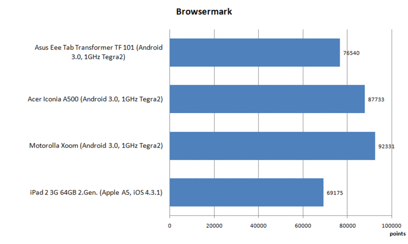 Test Asus Transformer Eee Pad TF101 vs. Acer Iconia A500 vs. Motorola Xoom vs. Apple iPad 2