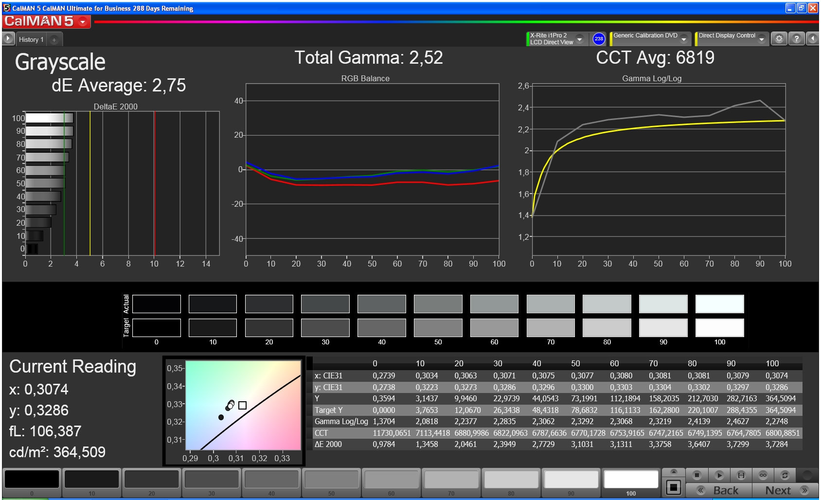 ΔE Greyscale Calman: 2.75 | ∀{0.09-98 Ø5}