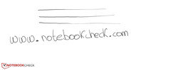 Schon einige Millimeter vor dem Display wird der Stift vom Tablet wahrgenommen und reagiert schnell bei der Berührung. Auch mehrere Druckstufen werden erkannt. Im Vergleich zu den Surface Reihen sieht das Schriftbild nicht ganz so fein aus, außerdem sind leichte Ausartungen erkennbar. Wer den Collage-Block für die Uni ersetzen will, sollte lieber auf ein anderes Gerät ausweichen. Gelegentliche PDF-Notizen oder kleinere Schreibarbeiten stellen kein Problem dar.