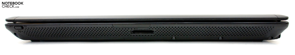Bis auf den Kartenleser und einen Hardwareschalter für die Mobiltechnologien bleiben die Front- und Rückseite des Subnotebooks frei von Schnittstellen. Die Verteilung der Schnittstellen beschränkt sich hauptsächlich auf die Gehäuseseiten und ist aufgrund des Platzangebotes relativ frontlastig wodurch schnell ein Kabelsalat neben dem Gerät entstehen kann.