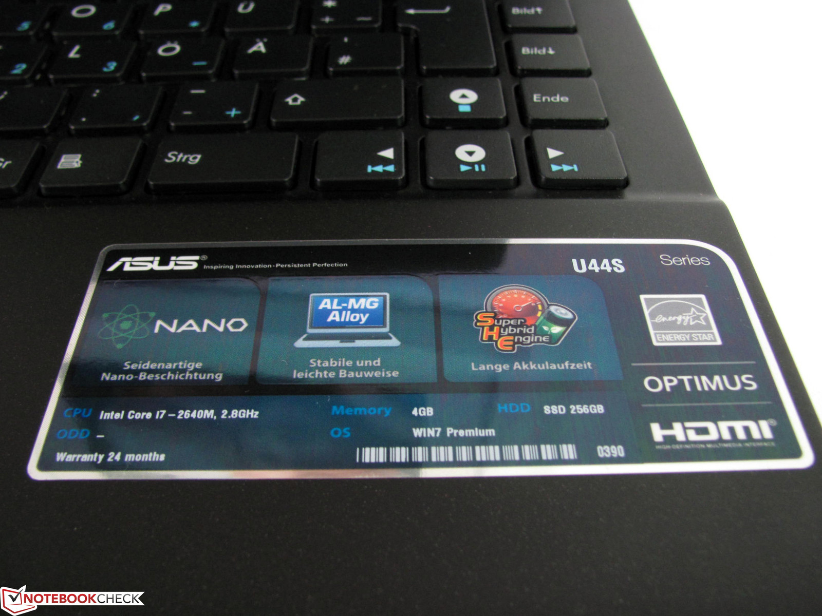 Das Testgerät gehört noch zur etablierten Sandy-Bridge-Generation und ist mit dem oft anzutreffenden Intel HM65 Chipsatz ausgestattet. Als Prozessor kommt Intels Core i7-2640M zum Einsatz, die bis zum Erscheinen der Ivy-Bridge-Generation als schnellste 2-Kern-CPU im Mobilbereich bezeichnet werden kann. In der Grafiksektion hat man die Nvidia-Optimus-Technologie verwirklicht, die je nach Anwendungsgebiet für den Einsatz der dann optimalen Grafiklösung sorgen soll. Zur Auswahl stehen die in der CPU integrierte Intel HD Graphics 3000 sowie eine separate Nvidia Geforce 610M, die der Einsteigerklasse zuzurechnen ist. Als Massenspeicher vertraut man bei allen Modellen der U44-Serie derzeit auf ein 256 GB fassendes Solid State Drive, dass nicht nur durch seine Geschwindigkeit, sondern auch durch die relativ hohe Kapazität und ein geringes Betriebsgeräusch überzeugen soll. Der Arbeitsspeicher ist beim Testmodell mit einem 4-GB-Modul berücksichtigt worden und kann auf maximal 8 GB in 2 Slots ausgebaut werden.