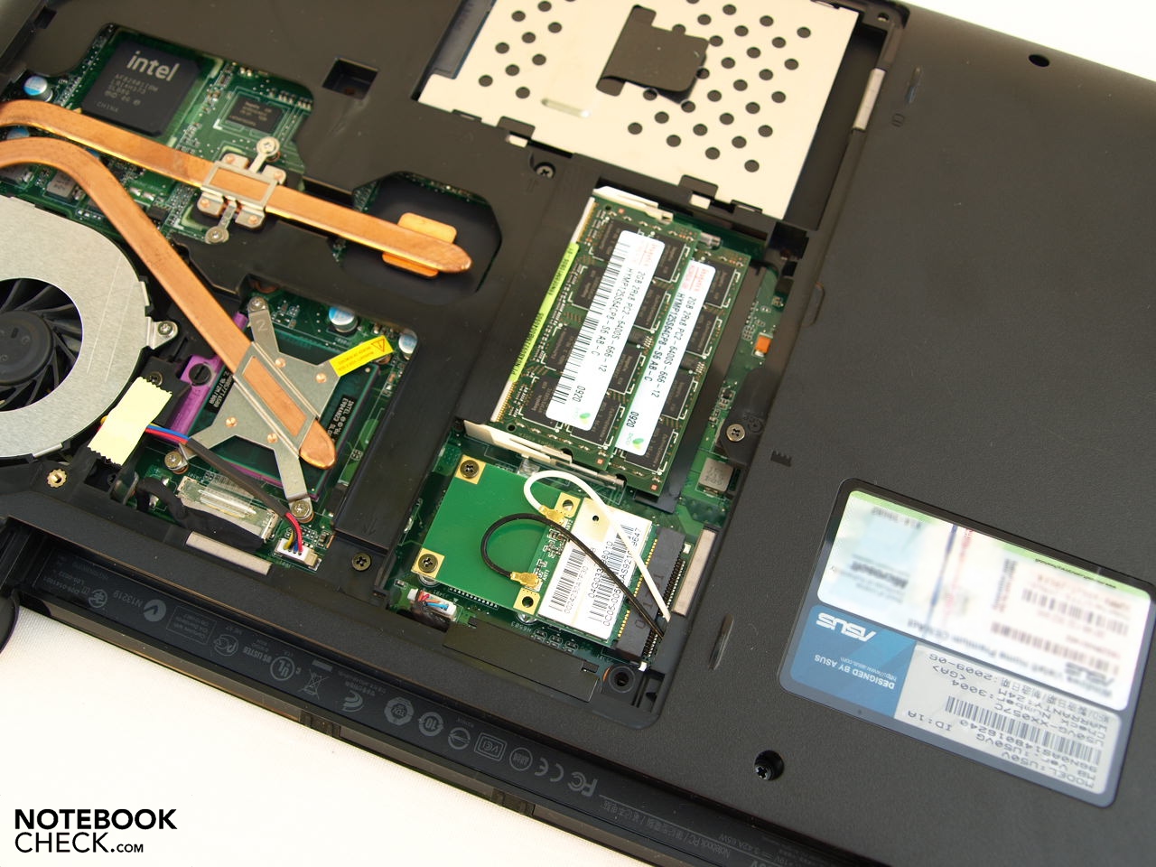 Mit vier Gigabyte Hauptspeicher bietet das U50Vg die maximale RAM-Kapazität die von einem 32-bit Betriebssystem noch adressiert werden kann. Aufgrund der speziellen Eigenheiten der Intel Architektur und der Reservierung von Speicher für Memory Mapped IO und Betriebssystem stehen jedoch nur etwa drei Gigabyte zur Verfügung. Theoretisch kann der PM45 Express Chipsatz bis zu maximal acht Gigabyte Hauptspeicher unterstützen. Bei einem Speicherupgrade wird aber wenigstens eines der eingebauten Module obsolet und zudem die Installation eines 64-Bit Betriebssystems fällig. Vor diesem Schritt sollte man jedenfalls überprüfen, ob für die eventuell schon vorhandenen Peripheriegeräte auch 64-Bit Treiber zur Verfügung stehen. Asus bietet das U50Vg allerdings nur mit maximal vier Gigabyte Hauptspeicher an.