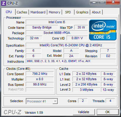 Auch wenn sich die nächste Intel Generation namens Ivy Bridge bereits langsam am Horizont abzeichnet, gehört der verbaute Core i5-2430M der Sandy-Bridge-Architektur noch lange nicht zum alten Eisen. Dank Turbo Boost 2.0 bis 3,0 GHz (Basistakt 2,4 GHz), SMT-Technologie zur parallelen Abarbeitung von bis zu 4 Threads und exzellenter Pro-MHz-Leistung erreicht der Mittelklasse-Dualcore eine für fast alle Anwendungen ausreichend hohe Performance. Die TDP des gesamten Chips bleibt dabei mit 35 Watt auf einem akzeptablen Niveau. Als erwähnenswerte Besonderheit unterstützt der i5-2430M im Gegensatz zum Vorgängermodell Core i5-2410M auch die Verschlüsselungsbeschleunigung AES-NI. Für zusätzliche Informationen möchten wir Sie an dieser Stelle auf unsere CPU-Sektion verweisen.