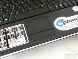 Das Touchpad ist beinahe plan mit den umliegenden Handballenauflagen, und besitzt rein optisch nur eine einzige Taste unterhalb des Pads. Durch die Wippenartige Konstruktion lässt diese sich aber im linken und rechten Bereich drücken und somit die jeweilige Tastenfunktion aktivieren. Negativer Aspekt dieser Lösung: Im mittleren Bereich gibt es eine tote Zone in der die Taste nicht anspricht.