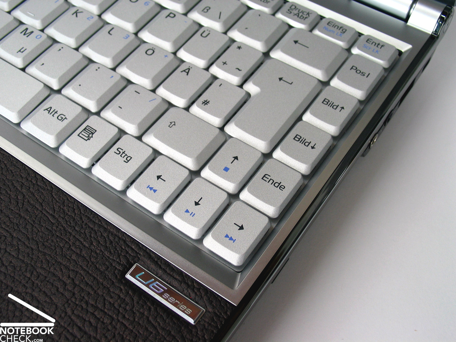Eine gewisse Eingewöhnungszeit sollte man auch für das Tastenlayout einplanen, an dem ein paar kleinere Änderungen zur klassischen Tastenanordnung vorgenommen wurden. Auffällig wird hier beispielsweise die [><] Taste, welche von ihrer angestammten Position zwischen der Shift Taste und dem Buchstaben [Y] nach unten, zwischen die Leer- und die Alt Taste verschoben wurde. Profitieren konnte davon vor allem die linke Shift Taste deren Größe nun besonders großzügig ausfällt. Einige Funktionstasten wie etwa Bild auf und Bild ab finden sich rechts angeschlossen an die Enter Taste.