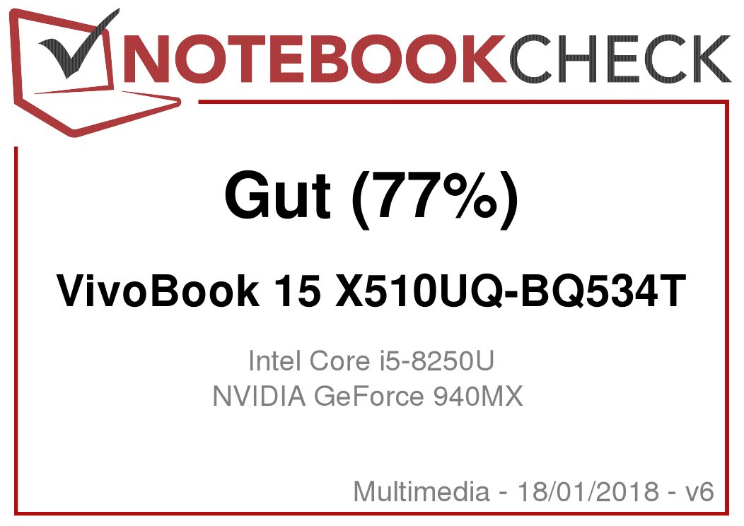 Test Asus VivoBook 15 Laptop (i5-8250U, GeForce 940MX, FHD)