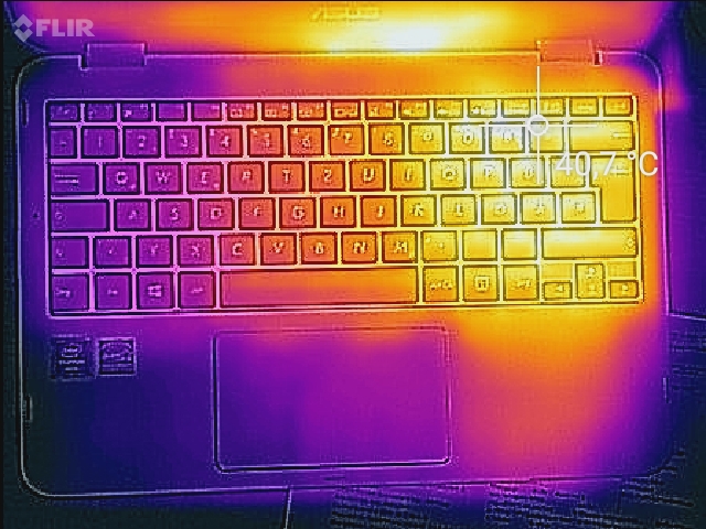 (+) Die Handballen und der Touchpad-Bereich erreichen maximal 33.8 °C und damit die typische Hauttemperatur und fühlen sich daher nicht heiß an.