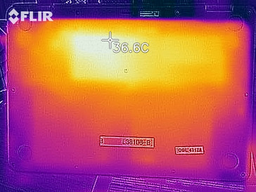 Sonderlich stark erwärmt sich das Notebook nicht. Während des Stresstests messen wir lediglich an einem Messpunkt eine Temperatur von 40 °C.