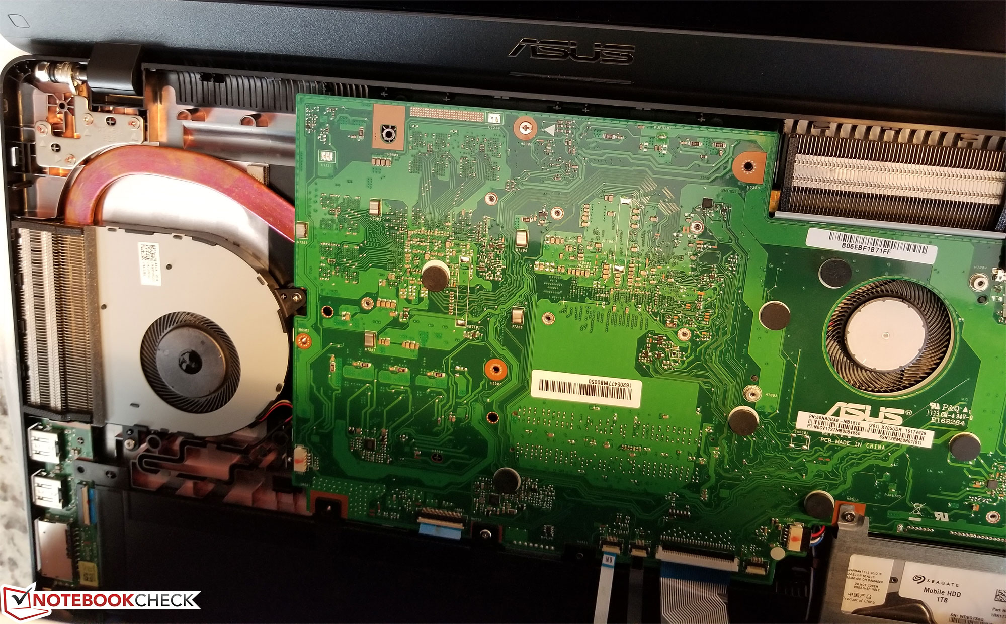 Doch auch wenn das alles geschafft ist, gibt es nicht viele Wartungsmöglichkeiten. Die mechanische Festplatte wird durch weitere Schrauben festgehalten und liegt in einem Metall-Caddy, der WLAN-Adapter kann von der Seite gut erreicht werden, und einer der beiden Lüfter ist auch zugänglich. Die anderen Komponenten - inklusive RAM, NVMe-SSD und des anderen Lüfters - sind ohne komplettes Auseinandernehmen des restlichen Geräts, samt Motherboard, nicht erreichbar.