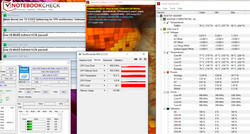 Unseren Stresstest (Prime95 und Furmark laufen für mindestens eine Stunde) durchläuft das Vivobook im Netz- und im Akkubetrieb auf leicht unterschiedliche Weisen. Im Netzbetrieb wird die CPU von anfänglichen 2,2 GHz recht schnell auf Geschwindigkeiten um 1.000 MHz (800 bis 1.300 MHz) gedrosselt. Der Grafikkern beginnt den Test mit 950 MHz und wird im weiteren Verlauf des Tests ebenfalls gedrosselt. Im Akkubetrieb geht der Prozessor mit 400 bis 800 MHz zu Werke. Der Takt der CPU springt zwischen 300 MHz und 1,1 GHz hin und her.
