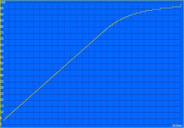 Zum Aufladen benötigt das VivoBook 2 Stunden und 40 Minuten.