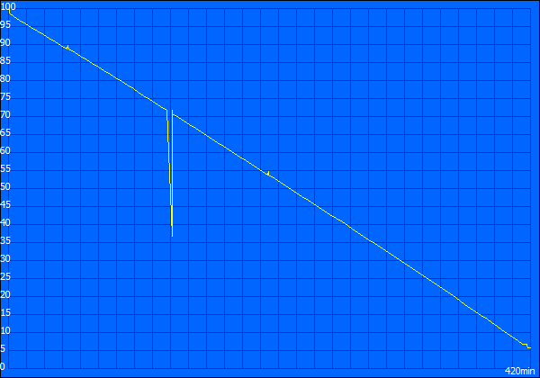 Die Akkulaufzeit im Leerlauf bestimmen wir mithilfe des Tools Battery Eater Reader´s Test, bei dem das Lesen eines Textdokumentes simuliert wird. Hierbei ist der Bildschirm auf dunkelster Stufe eingestellt und WLAN sowie Bluetooth sind ausgeschaltet. In diesem Test erreicht das VivoBook genau sieben Stunden Laufzeit.
