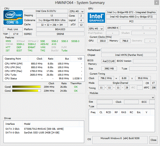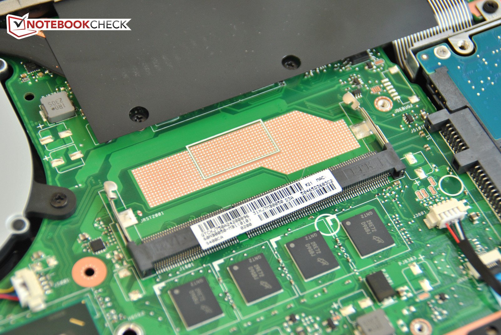 Als Arbeitsspeicher werden 4 GB DDR3-RAM auf dem Motherboard verlötet, ein freier RAM-Slot ermöglicht jedoch die Aufrüstung. Die Festplatte hat eine Kapazität von 500 GB und dreht mit 5.400 U/min. Hinzu kommt eine SSD mit 24 GB Speicher von SanDisk als Cache. Dieser soll die Vorteile von Flashspeicher und herkömmlicher Festplatte verbinden.