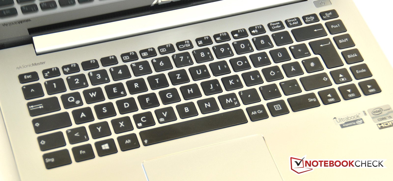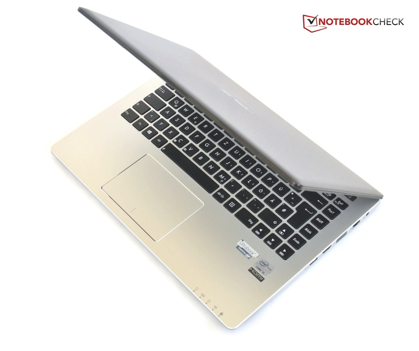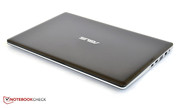 Auf den ersten Blick erscheint das VivoBook S400CA wie der kleine Bruder des kürzlich von uns getesteten Ultrabook Asus S56CM. Mit 14-Zoll-Bildschirmdiagonale und 1,8 kg ist das VivoBook zwar etwas kleiner und auch etwa ein halbes Kilo leichter, aber man findet ebenfalls das gebürstete dunkle Aluminium als Displaydeckel vor und die schwarzen Tasten der Tastatur sind in eine Base Unit eingelassen, deren Oberseite aus Aluminium und deren Unterseite aus schwarzem Kunststoff besteht. Auch die abgerundeten Ecken im vorderen Bereich ähneln sich stark. Vergleicht man allerdings die beiden Geräte etwas genauer, fällt die grundlegend unterschiedliche Anordnung der Elemente auf.