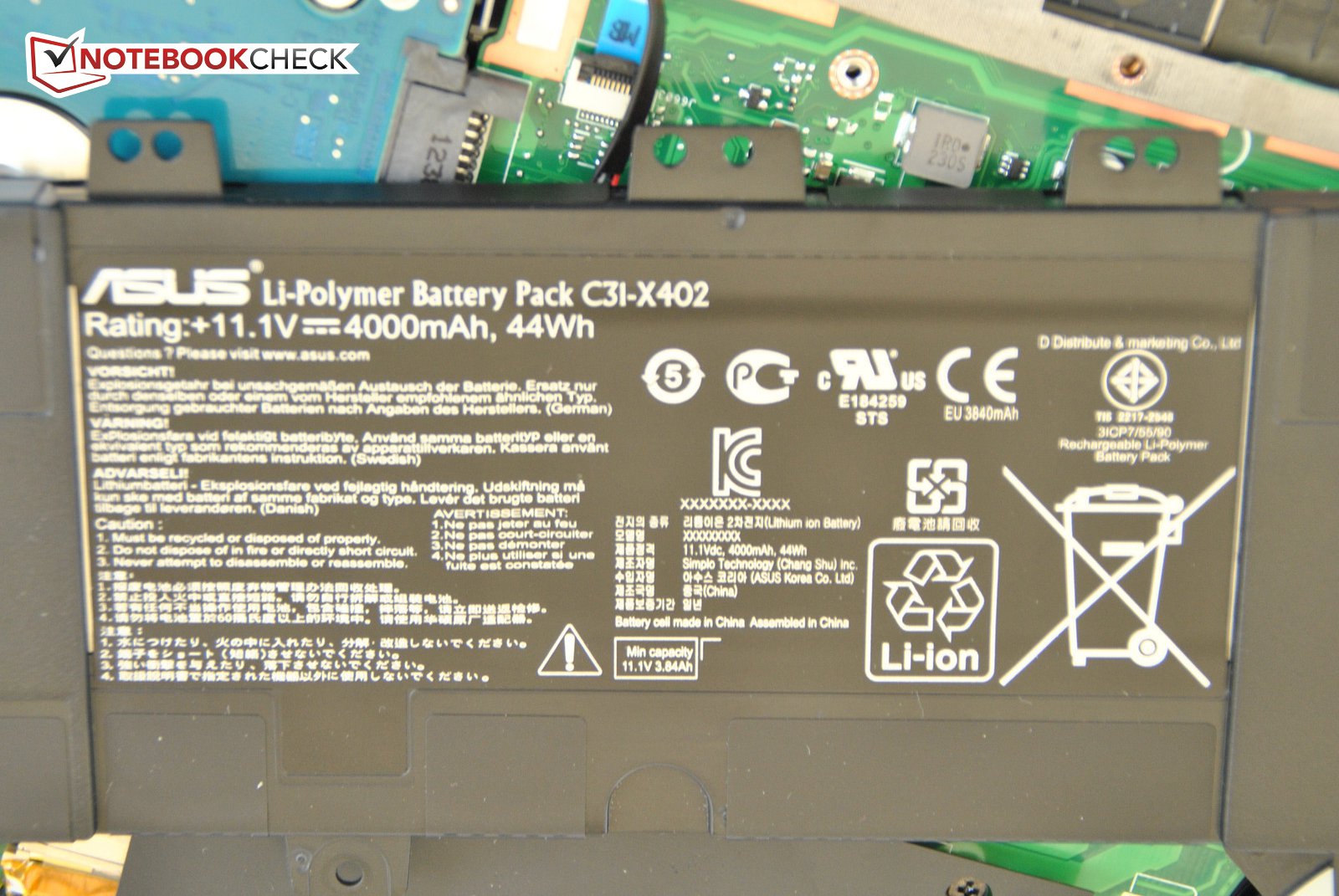 Der Akku im VivoBook ist fest integriert und kann nur ausgewechselt werden, wenn die gesamte Unterseite der Base Unit abgenommen wird. Er basiert auf der Lithium-Polymer-Technologie und soll den gängigen Lithium-Ionen-Akkus überlegen sein. Die Kapazität gibt Asus mit 44 Wh an und durch den geringen Energieverbrauch erwarten wir entsprechend lange Akkulaufzeiten.