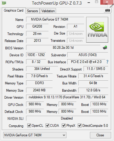 Asus gönnt dem VivoBook S451LB eine durchaus potente dedizierte Nvidia-Mittelklasse-Grafikkarte der Reihe GT 740M mit 2 GB Speicher. Als eines von überhaupt recht wenigen Notebooks im 14-Zoll Format wartet das Asus mit dieser Ausstattungskomponente und zugleich recht handlichen Abmessungen im Aluminiumgehäuse auf.