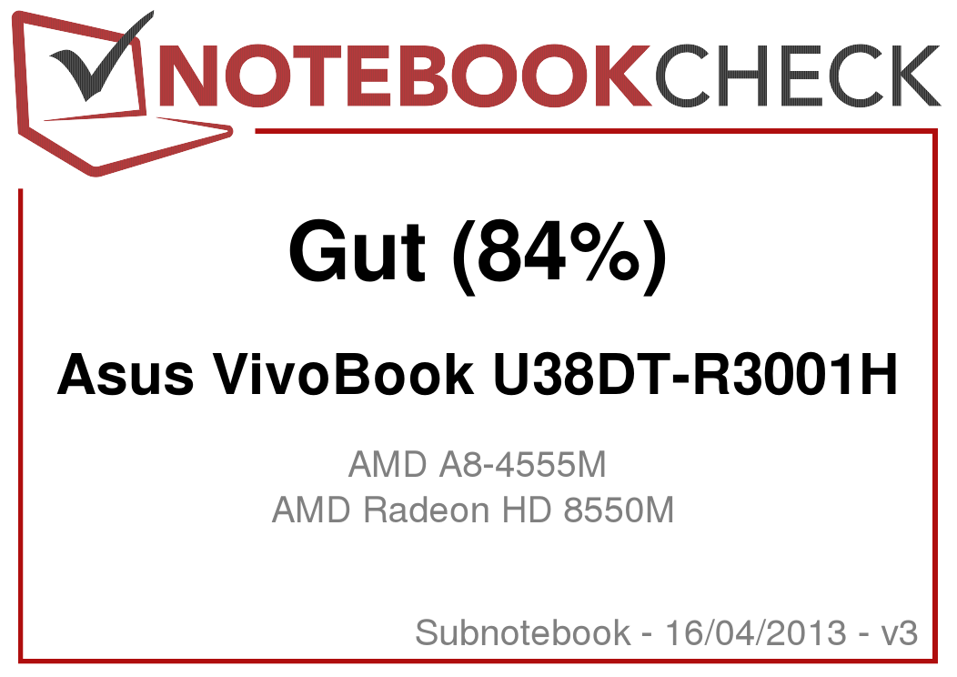 Starten wir am besten mit ein paar Eckpunkten, bevor wir ins Detail gehen: Bei der CPU hat sich Asus für den A8-4555M entschieden. Das preiswerte ULV-Modell richtet sich mit einem Takt von 1,6 bis 2,4 GHz primär an Einsteiger und anspruchslose Nutzer. Die dedizierte Grafikkarte schneidet etwas besser ab. Je nach Programm tendiert die Leistung der Radeon HD 8550M entweder zum Low-End- oder zum Mittelklasse-Bereich.
