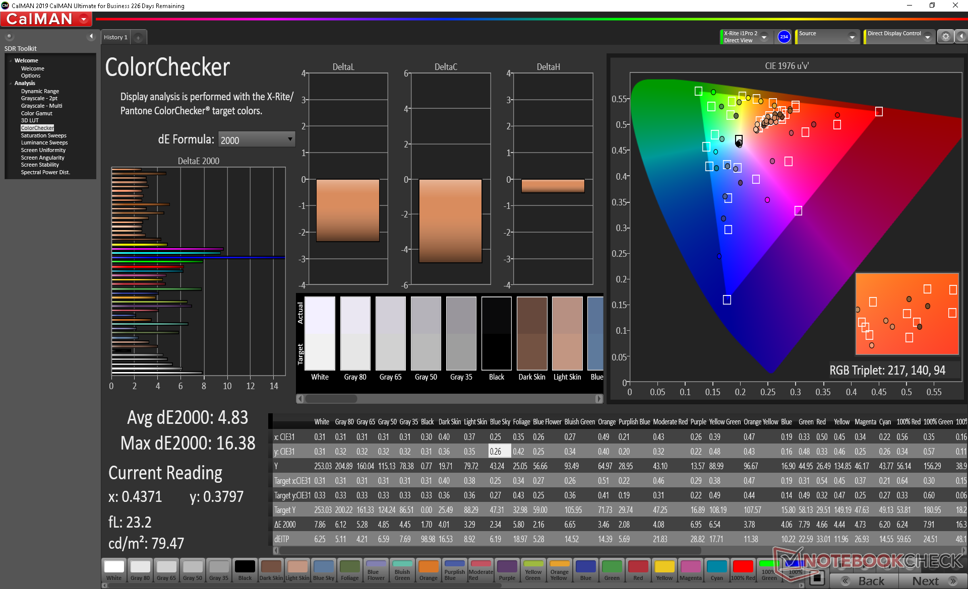 ΔE ColorChecker Calman: 4.83 | ∀{0.5-29.43 Ø4.77}