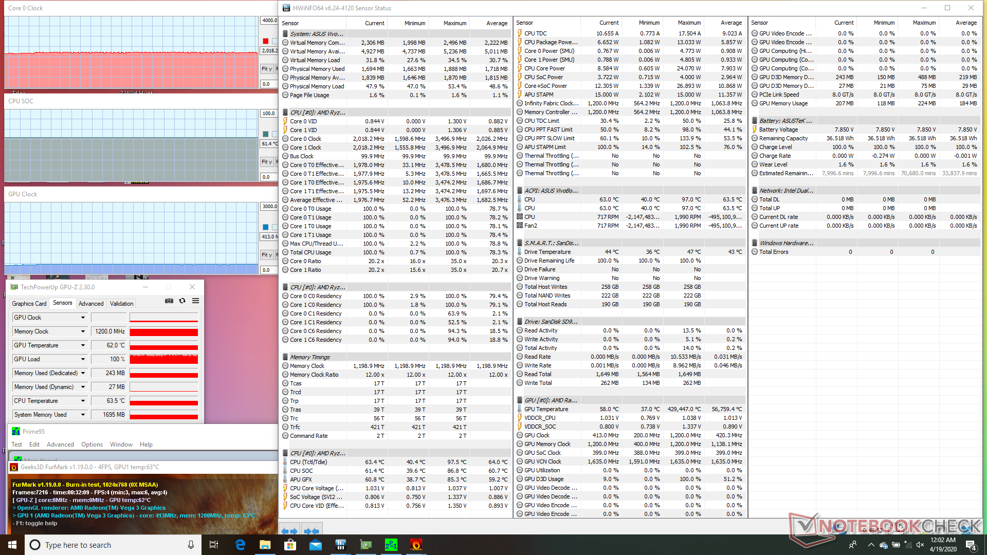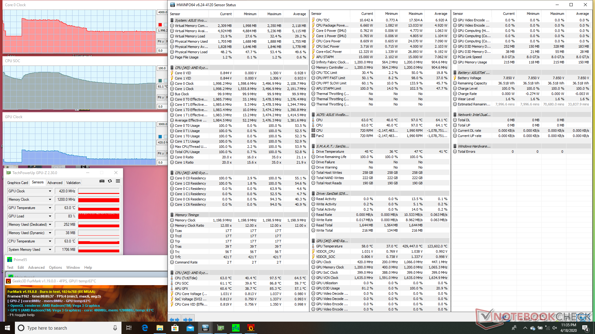 | Prime95 + FurMark Stress | 2.0 | 413 | 61 |