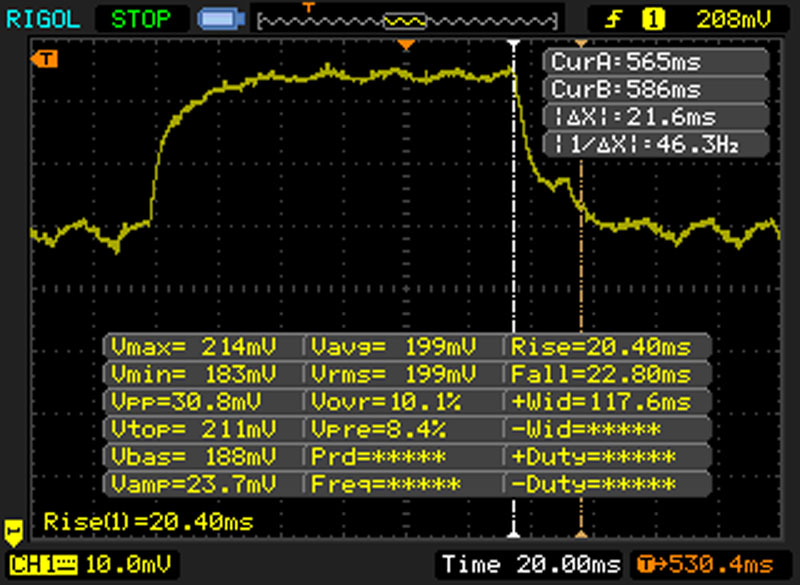 | 23 ms ... steigend ↗ und fallend ↘ kombiniert | ↗ 6 ms steigend | |
