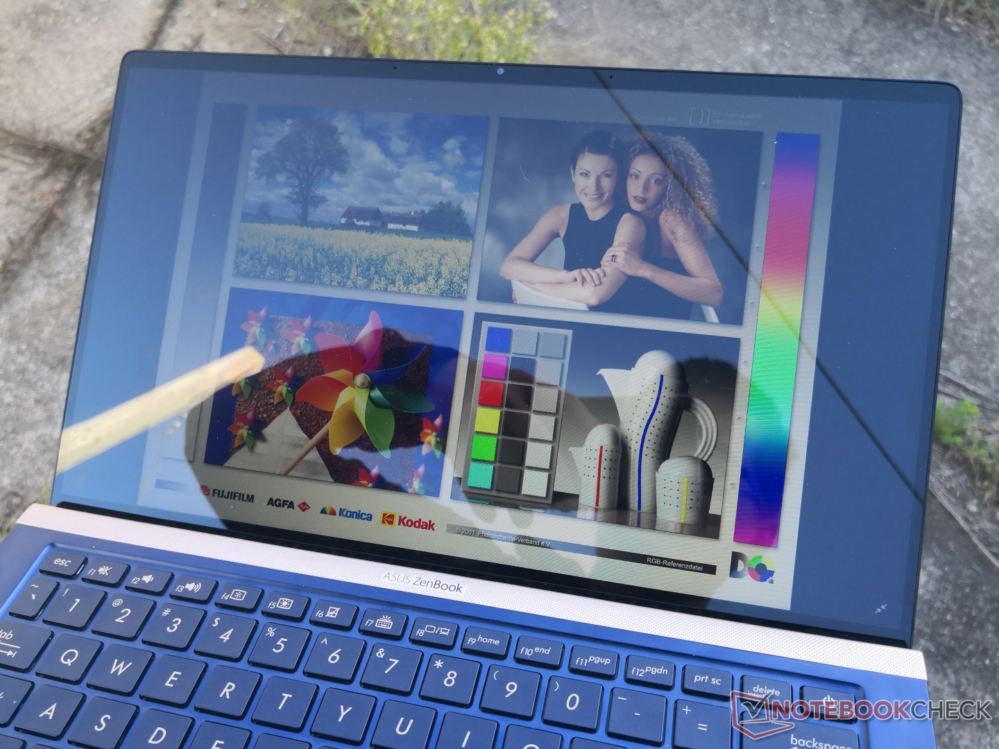 Die Farbraumabdeckung erstreckt sich über fast den gesamten sRGB-Farbraum und ungefähr 63 Prozent des AdobeRGB-Standards. Diese Ergebnisse ähneln denen des 4K-UHD-Panels von Sharp, das beim XPS 13 zum Einsatz kommt und sind etwas besser als beim AU Optronics des älteren UX331. Künstler, die sich ein noch größeres Farbspektrum wünschen, sollten einen Blick auf das ZenBook UX580 werfen, da dieses über 100 prozentige AdobeRGB-Abdeckung verfügt.