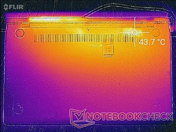 (±) Auf der Unterseite messen wir eine maximalen Wert von 44 °C (im Vergleich zum Durchschnitt von 39.3 °C).