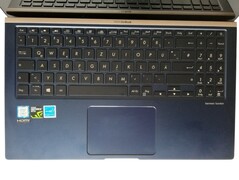 Die Tastatur des Asus ZenBook 15 ist sehr leichtgängig und bietet einen geringen Hub mit spürbarem Druckpunkt. Die Tasten sind sehr flach und weisen eine glatte Oberfläche auf, wodurch die Finger häufig nicht mittig auf einer Taste landen. Nach etwas Eingewöhnungszeit gehen auch längere Schreibarbeiten gut von der Hand. Der Blick fällt dabei aber häufig auf die Tastatur, um sicherzustellen, dass auch der richtig Buchstabe gedrückt wird. Die Pfeil- und Funktionstasten fallen zudem etwas klein aus, dafür findet Asus noch Platz für einen Nummernblock.