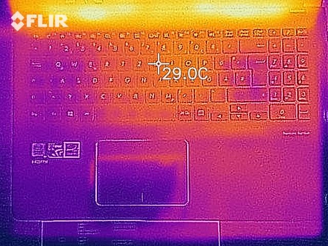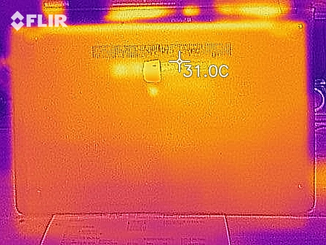 (+) Die Handballen und der Touchpad-Bereich sind mit gemessenen 31.9 °C kühler als die typische Hauttemperatur und fühlen sich dadurch kühl an.