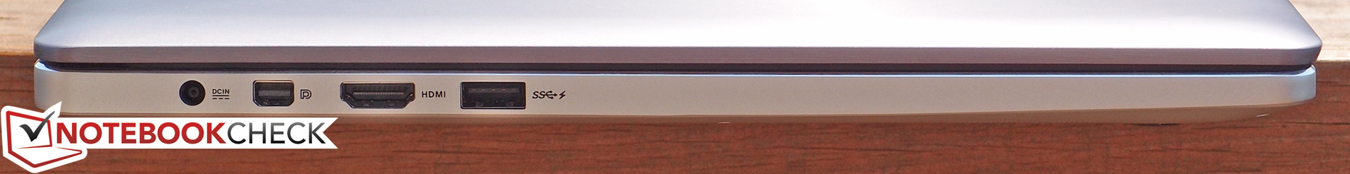 Die Anschlussausstattung des UX501 ist ordentlich, für diese Geräteklasse und Größe allerdings etwas mau. Man bekommt lediglich 3 USB-Anschlüsse – einen weniger als wir bei einem 15,6-Zoll-Gerät gerne sehen würden – aber zumindest unterstützen alle den schnellen 3.0-Standard. Während VGA aufgrund des DisplayPort überflüssig ist, gibt es zusätzlich einen gerne gesehenen HDMI-Ausgang. Für Ethernet und VGA müssen allerdings die beiden mitgelieferten Adapter (USB-Ethernet, DisplayPort-VGA) verwendet werden. Am Gehäuse gibt es zwar keine entsprechende Markierung, aber unser Testmodell unterstützt ebenfalls den Thunderbolt-Standard.