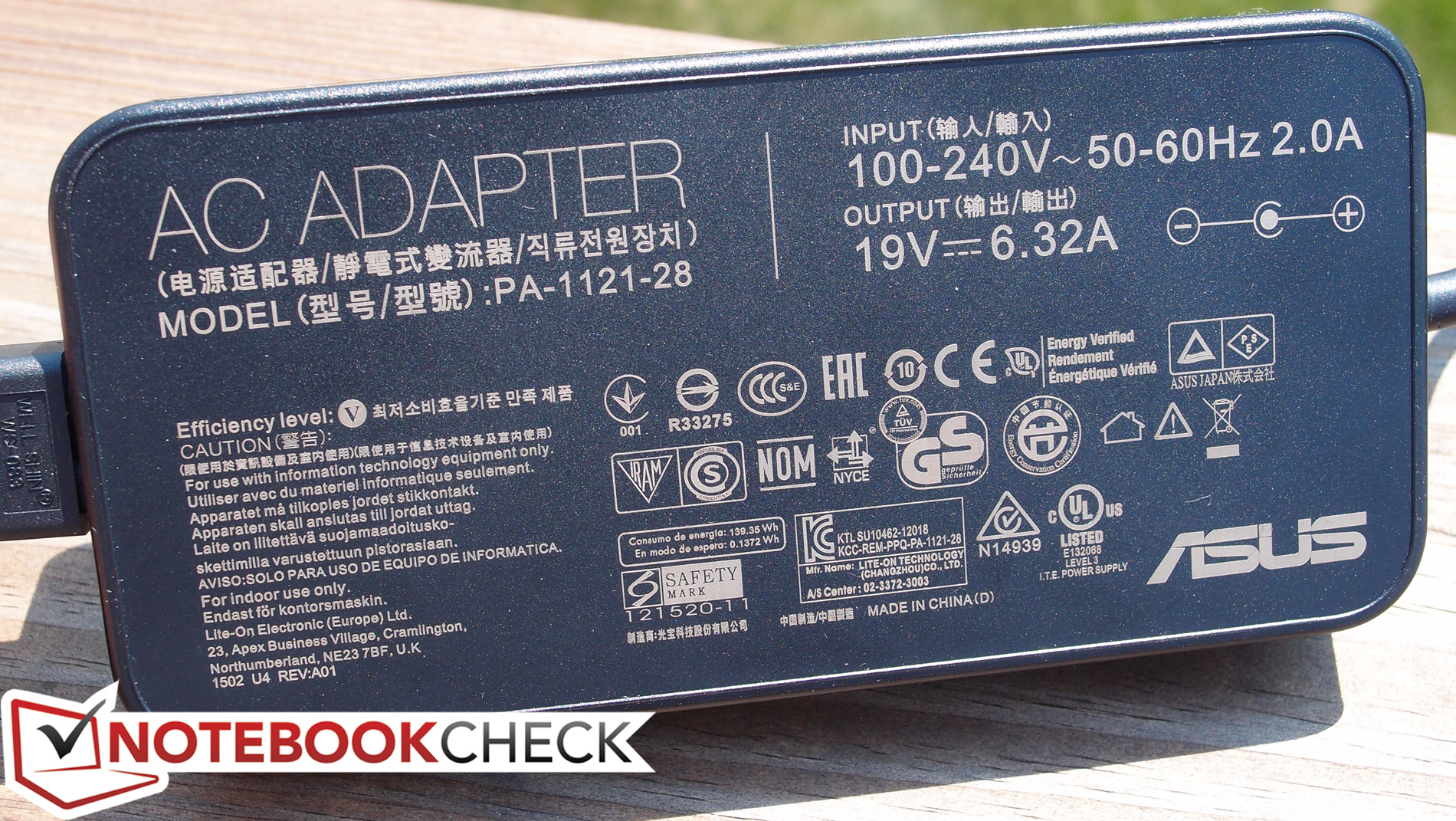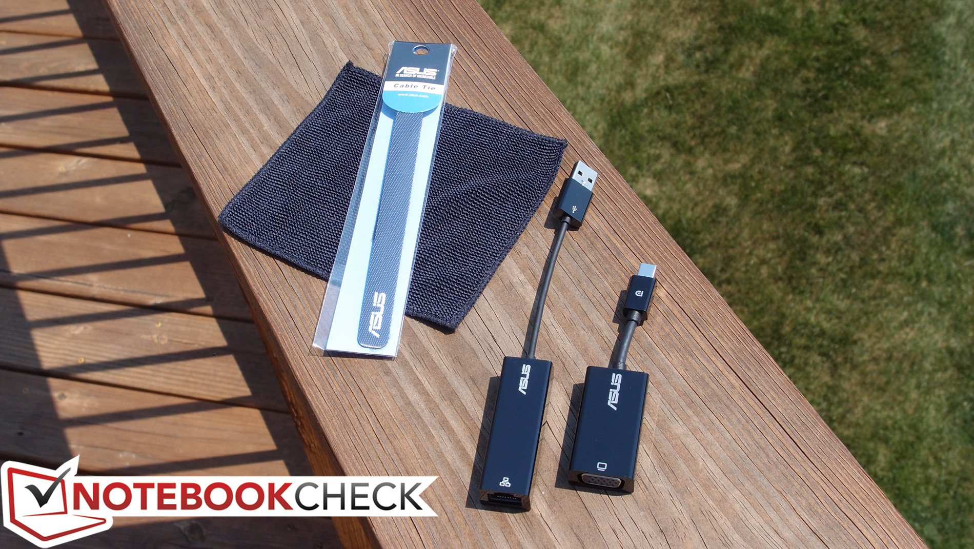 Das 120-Watt-Netzteil des UX501JW-DS71T ist recht groß und mit 544 g auch recht wuchtig. In der Verpackung unserer Testkonfiguration finden wir noch Adapter für USB-Ethernet und DisplayPort-VGA sowie ein Mikrofaserreinigungstuch und einen Asus Schlüsselanhänger.