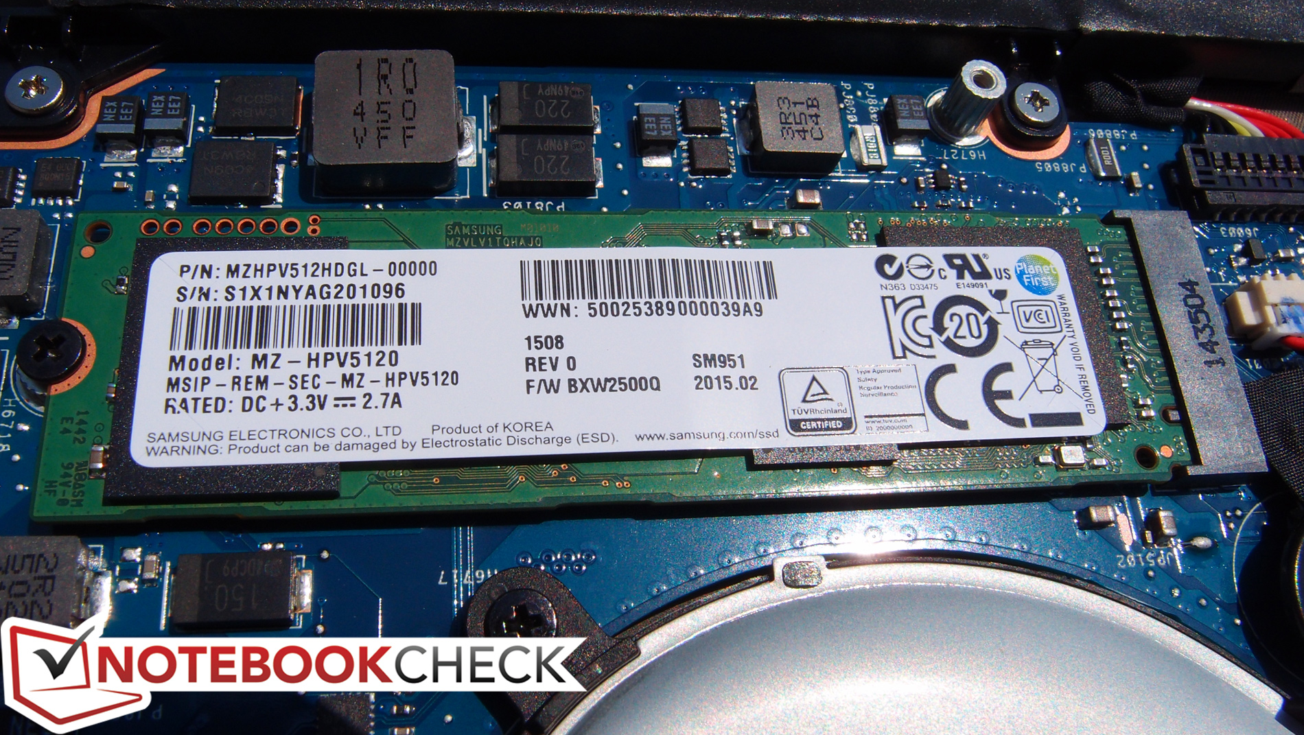 Asus bestückt das UX501 mit einer Samsung SM951-SSD mit der Modellnummer MZHPV512HDGL. Angebunden wird das Laufwerk über die PCIe-x4-Schnittstelle, was die Ergebnisse im Vergleich zu rivalisierenden x2-Laufwerken beinahe verdoppelt. Unsere Testergebnisse zeigen auf jeden Fall ein sehr schnelles Modul: 1.401 MB/s (seq. Lesen) und 1.112 MB/s (seq. Schreiben) laut AS SSD. Auch die Leistung im 4K-64-Test ist mit 976,75 MB/s (Lesen) bzw. 351,6 MB/s (Schreiben) sehr gut und setzt neue Referenzen. Das Gesamtergebnis von 2.296 Punkten in AS SSD fasst diese Werte eindrucksvoll zusammen und fegt beinahe die gesamte Konkurrenz vom Tisch. Zu diesem Zeitpunkt behauptet Asus, dass es sich bei der Speicherlösung im UX501JW um die derzeit "schnellste SSD der Welt" handelt, was mit unseren Messungen übereinstimmt: Von den 430 Einträgen in unserer Datenbank liegt das Gerät derzeit an der ersten Stelle.