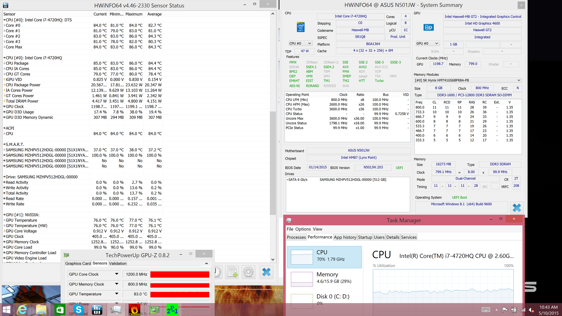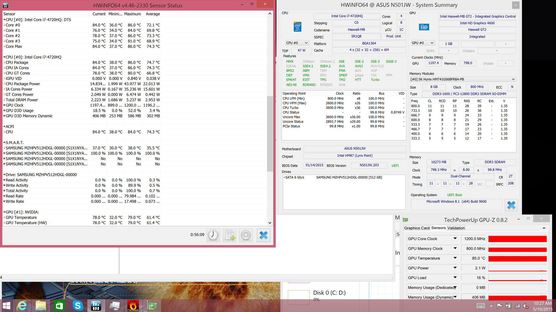 Bei unserem Test des G501JW haben wir das Verhalten unter Last noch ausführlicher untersucht, unter anderem auch mit Unigine Heaven und Metro: Last Light. Wir können mit ziemlicher Sicherheit sagen, dass sich diese Ergebnisse auch auf das UX501JW übertragen lassen.