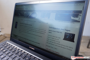 Die Bildschirmhelligkeit ist zwar nicht extrem hoch, doch dank der matten Displayoberfläche lässt sich das ZenBook S auch im Freien ordentlich benutzen. Solange man Reflexionen von Lichtquellen vermeiden kann, ist der Betrieb auch in sehr hellen Umgebungen möglich. Einen Lichtsensor, der die Helligkeit automatisch an die Lichtverhältnisse anpasst, ist aber nicht vorhanden.