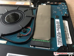 Die Unterseite des ZenBook S UX391U wird durch mehrere Torx-Schrauben gesichert und lässt sich entfernen, allerdings lohnt sich das nicht wirklich. Neben dem Prozessor ist auch der Arbeitsspeicher verlötet, weshalb man ausschließlich die M.2-2280-SSD austauschen kann. Der Akku ist nur verschraubt und könnte, falls nötig, ebenfalls getauscht werden.
