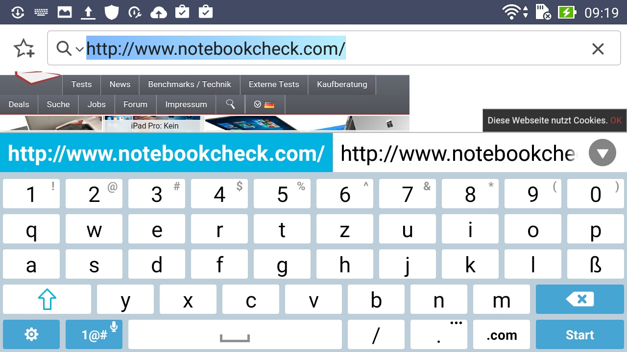Asus verwendet seine hauseigene virtuelle Tastatur. Um sorglos tippen zu können, ist es möglich, ein persönliches Wörterbuch zu kreieren, damit auch die eigenen Abkürzungen in den Wortvorschlägen auftauchen. Beeindruckend: Eine Handschrifteingabe ist möglich. Dabei kann die Dicke unterschiedlich eingestellt werden. Allerdings ist diese Funktion nur in speziellen Apps (SuperNote) einsetzbar. Die Tasten sind sowohl im Querformat als auch im Hochformat groß angesiedelt. Der Platz wird hervorragend genutzt. Tippvorgänge gelingen flüssig und schnell.