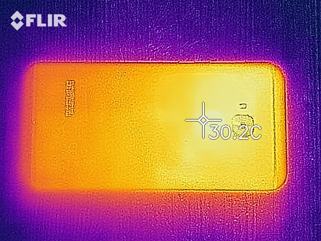 (+) Die maximale Temperatur auf der Oberseite ist 30.1 °C. Im Vergleich liegt der Klassendurchschnitt bei 35.2 °C (von 21.9 bis 247 °C für die Klasse Smartphone).