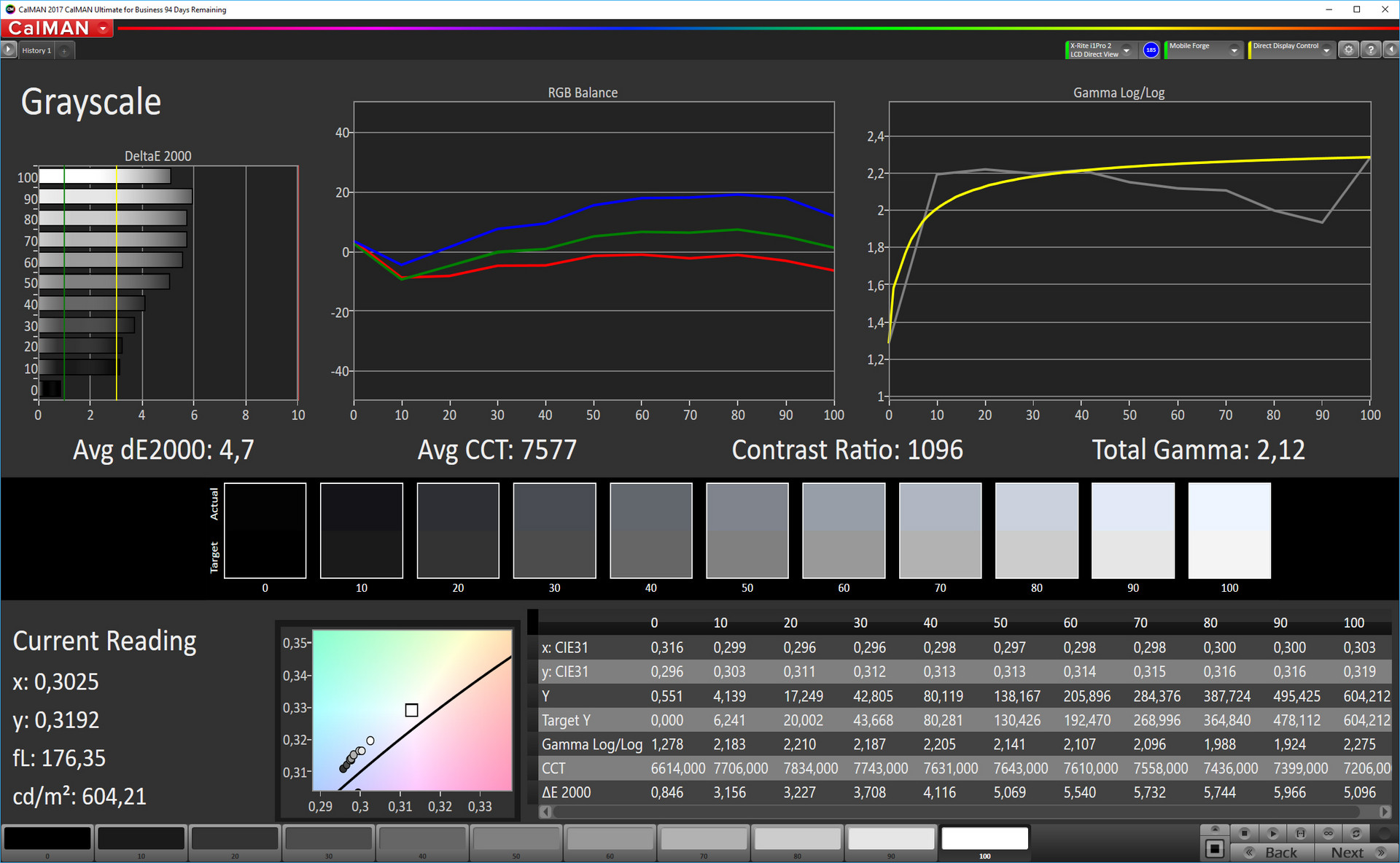 ΔE Greyscale Calman: 4.7 | ∀{0.09-98 Ø5}