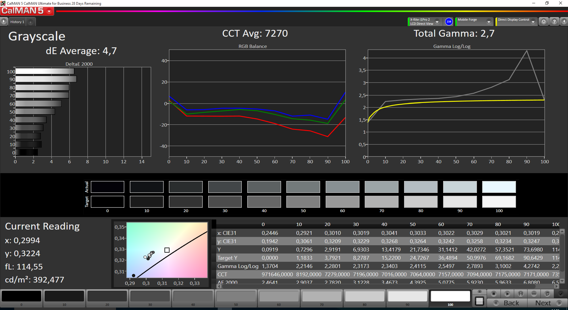 ΔE Greyscale Calman: 4.7 | ∀{0.09-98 Ø5}